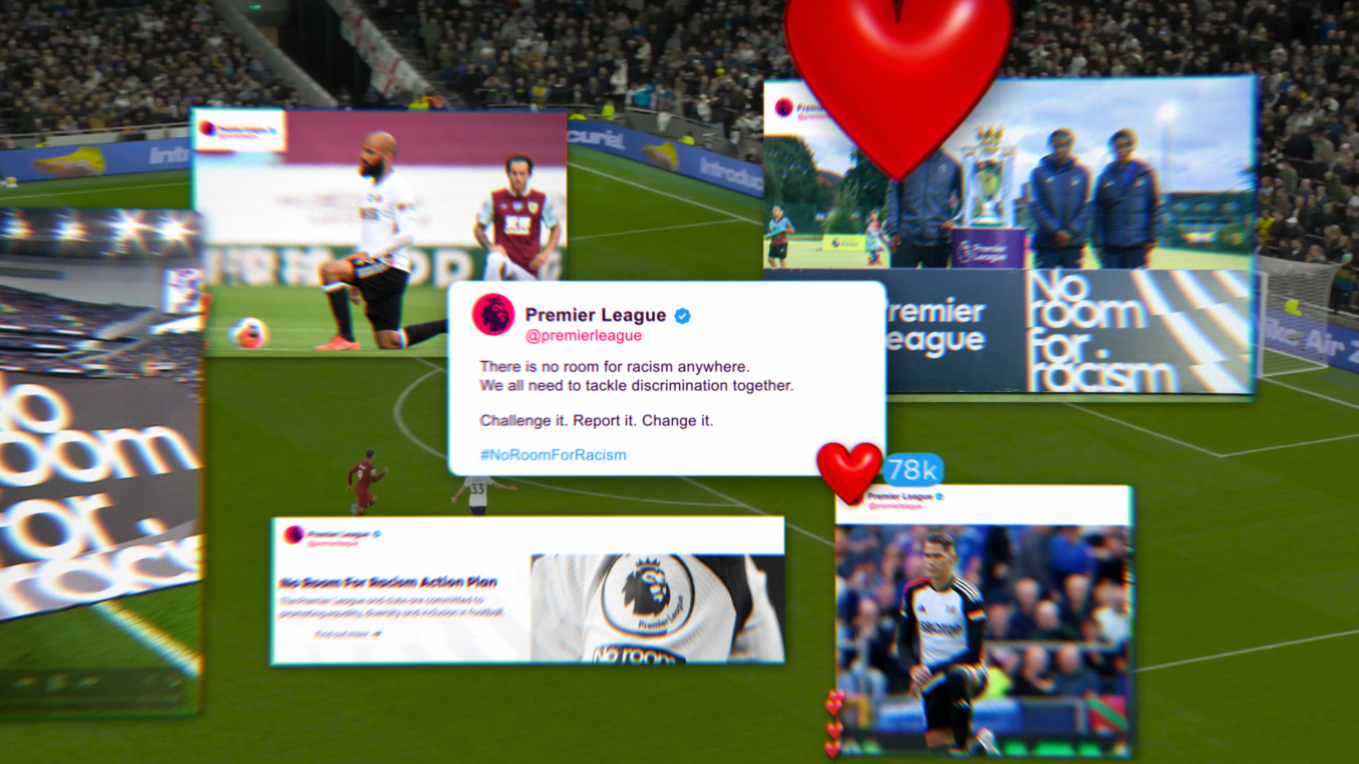 Our VFX and design teams have been working hard on this project for Premier League - No Room for Racism. Using collaged newspaper headlines, social media posts and footage of both footballers on the pitch and fans at home, the film shows how it takes all of us to make a stand for equality.