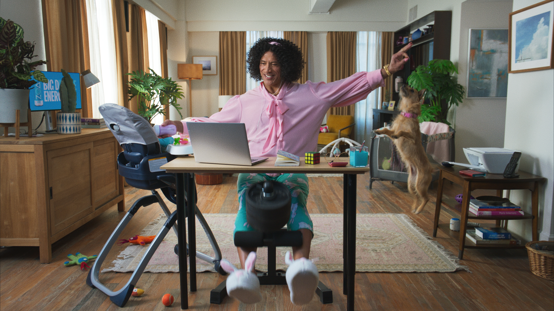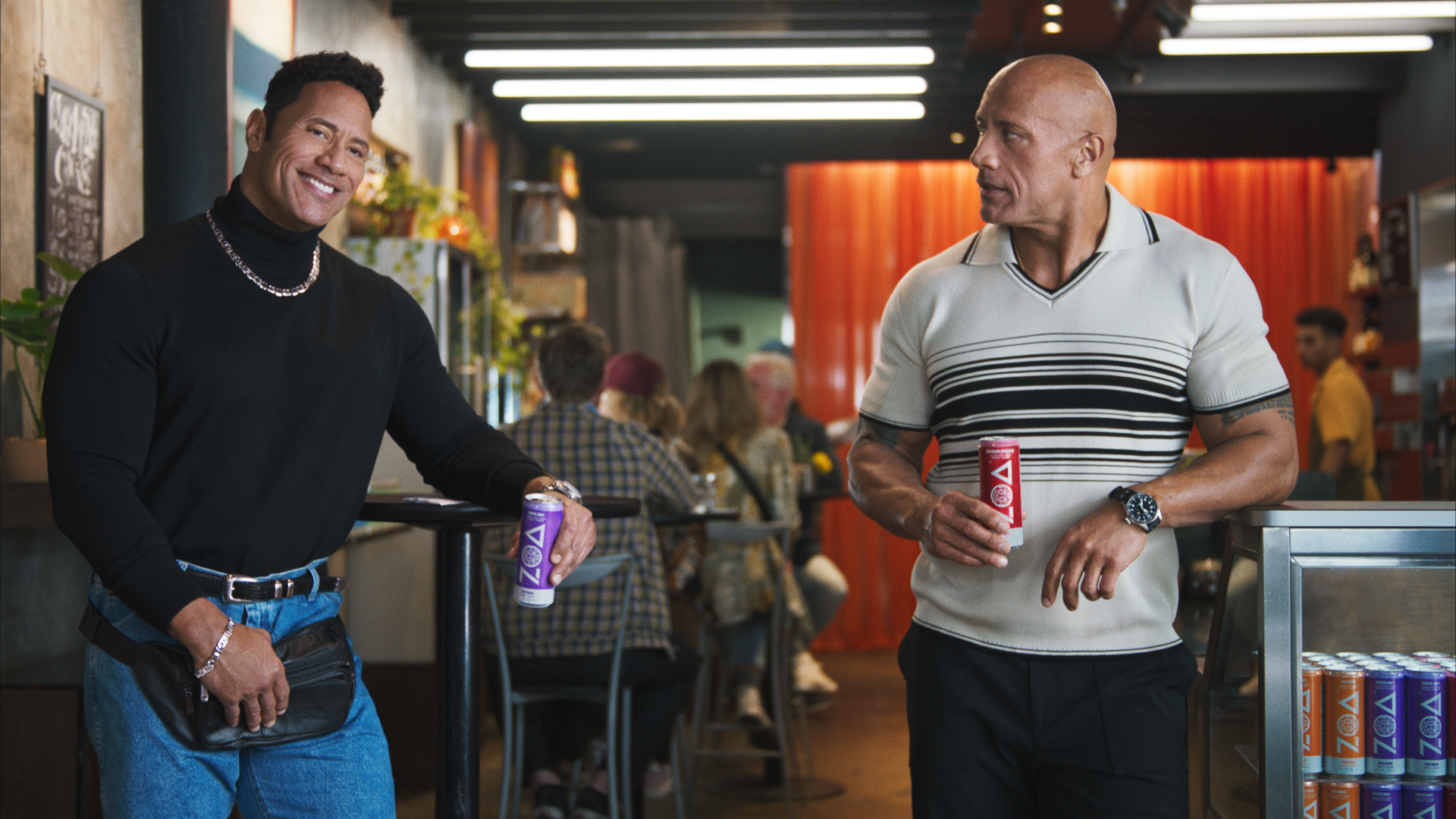 Dwayne ‘The Rock’ Johnson dons his old fanny pack (that’s bumbag for the brits!) in our latest ad for his drinks brand Zoa. Just a sip of Zoa brings out the Big Dwayne Energy in a multi-tasking mum, a reluctant aerial yoga beginner and a host of other characters.